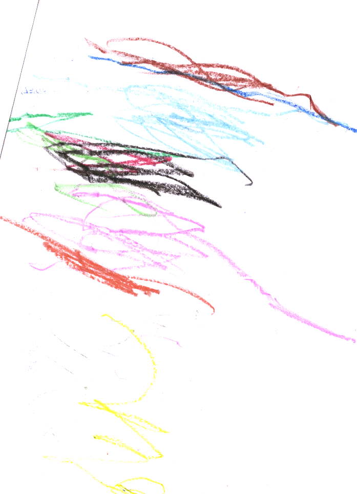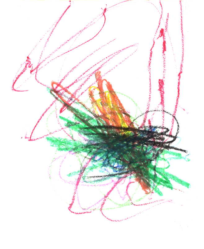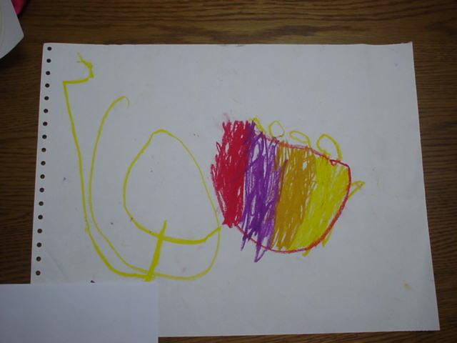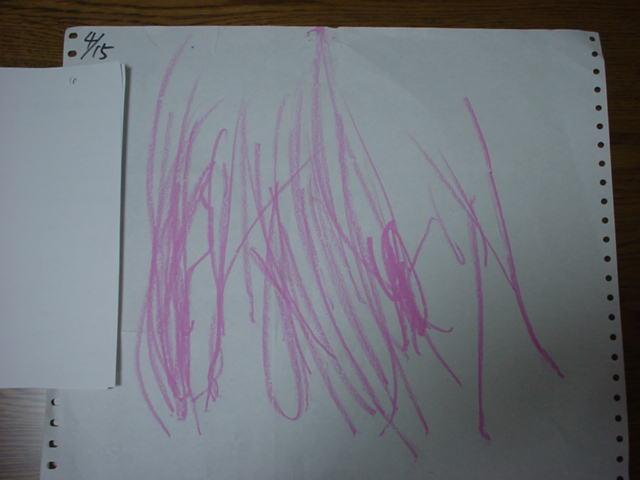 1999年10月28日、209作。ピンクのかたまりに「リュックサック」という注釈があるところを見ると遠足の絵か?