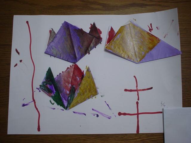 208の(左)は折り紙に彩色して画用紙に貼ってある。209の(右)はもう少しシンプル