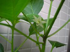 朝、植物に水をやっていて、トウガラシに花が咲いているのを発見。