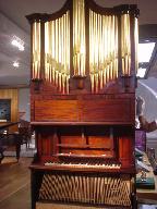 最初に実演を聞いた、家庭用パイプオルガン。但し金色のパイプはただの飾りで、内側に木の管がしこんであるのが鳴るらしい。